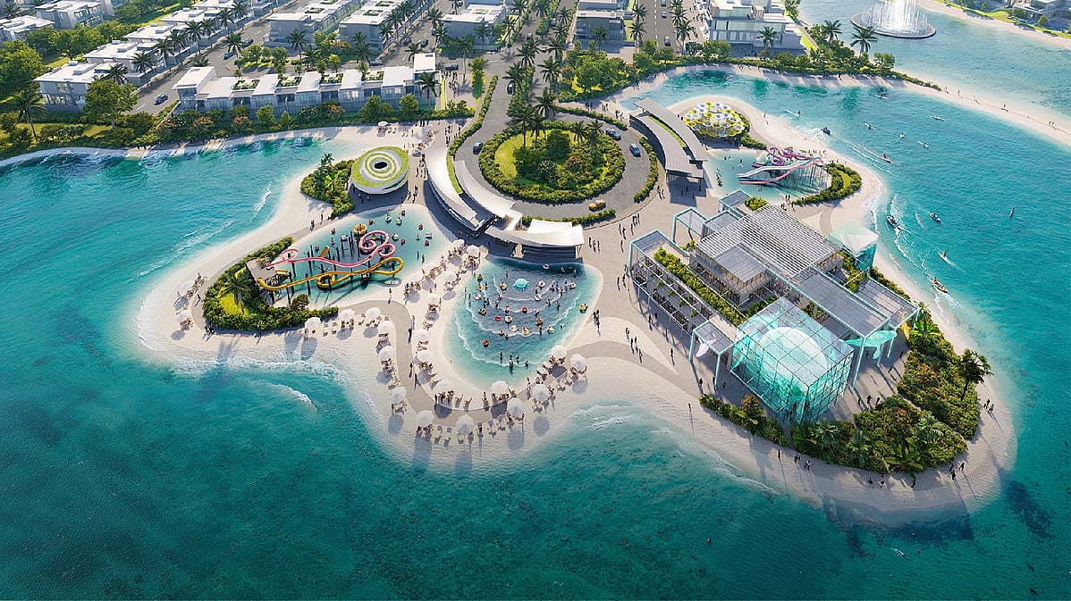 A serene Mediterranean-inspired community surrounded by azure lagoons